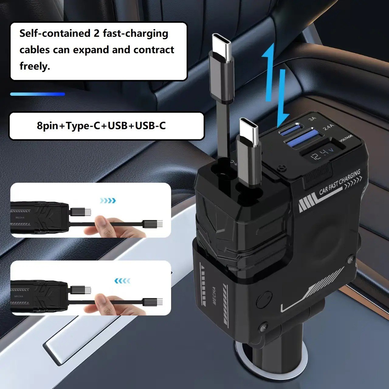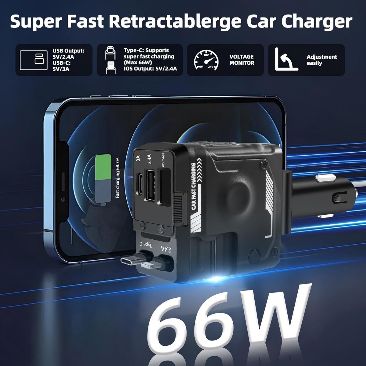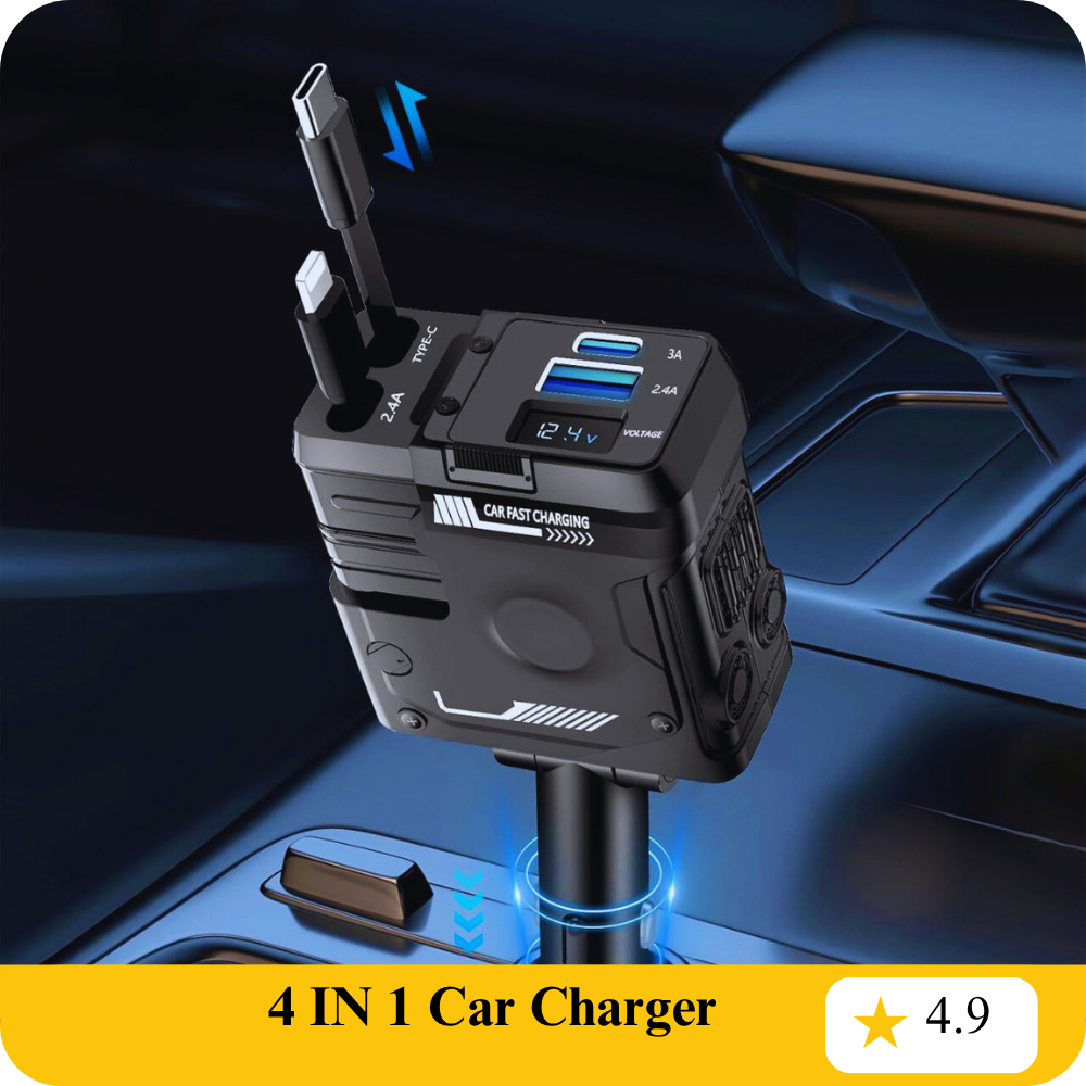 1 review for 4-in-1 Retractable Car Charger, Dual USB Fast Charging Adapter with 31.5-Inch Cables, Compatible with iPhone 16/15/14/13/12 Pro Max, iPad, Pixel, and Other Devices