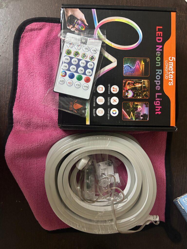 ✔📦Package contains – Smart neon rope, USB connector, Remote controller,User manual, hooks and screw.