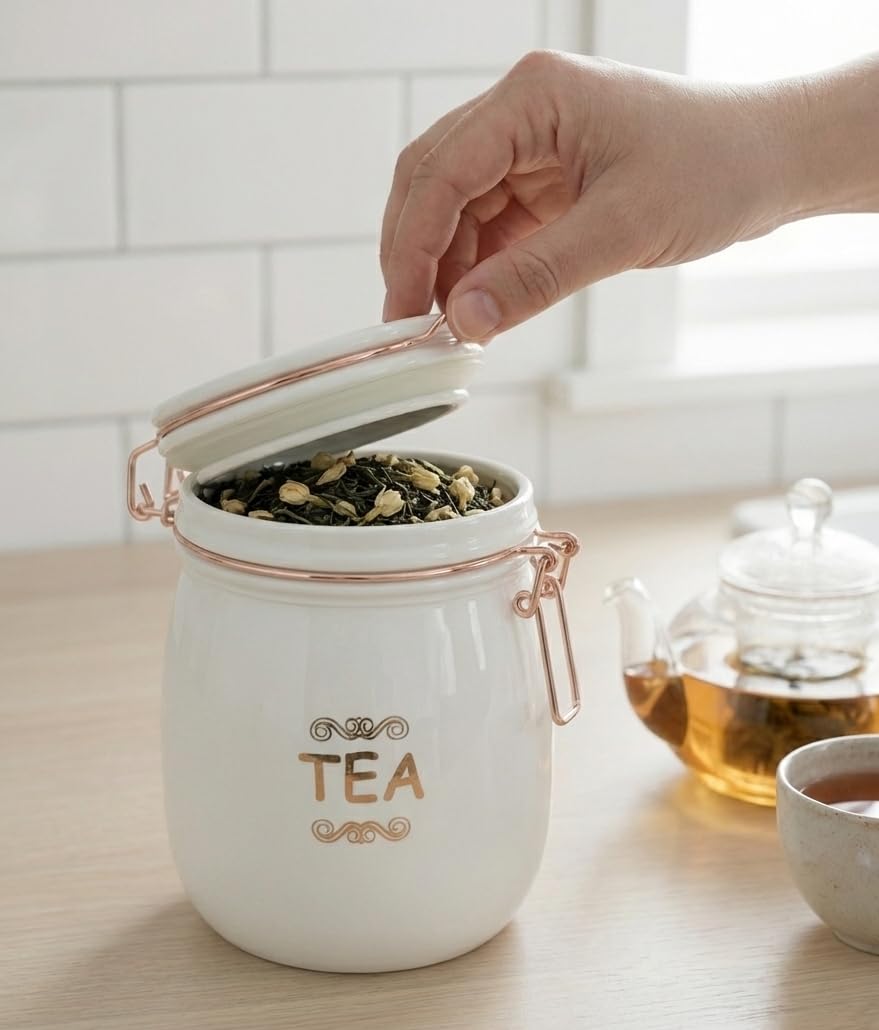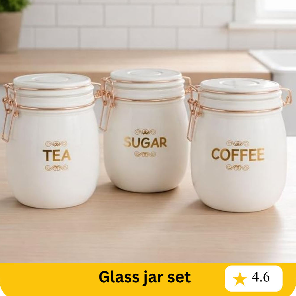 Transparent glass body thi contents easily dekhay ane wide mouth thi scoop/pour karvu super easy.