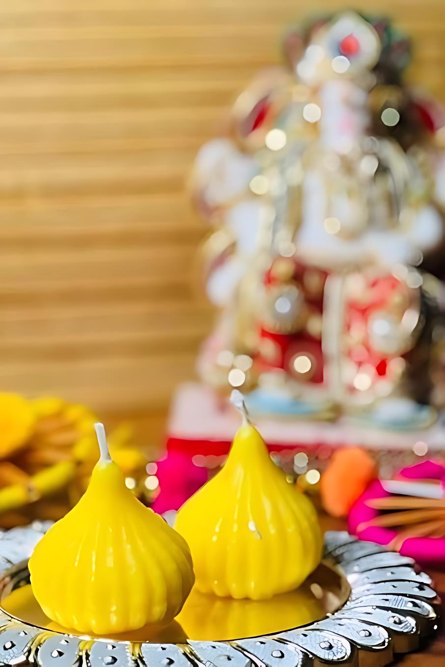 • Ganesh Chaturthi Special Design – Beautifully crafted Modak-shaped candles, perfect for festive décor and pooja celebrations.