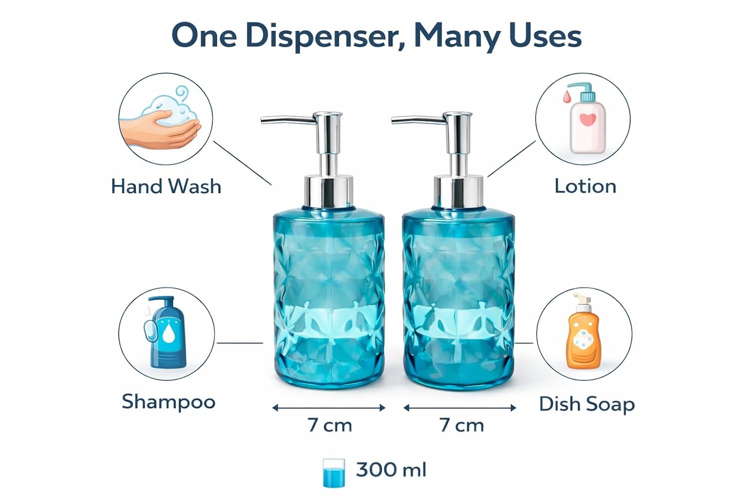 Bhavyta Durable Blue Plastic Soap Dispenser (300ml) – Stylish Crystal Pattern Bottle for Shampoo, Lotion & Kitchen Sink